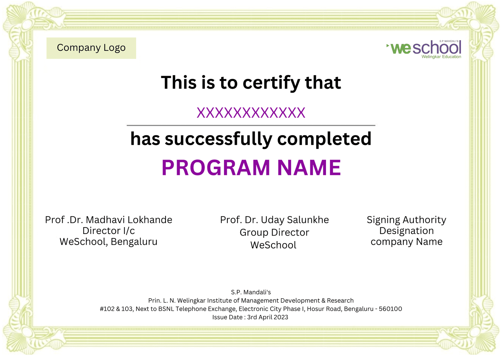At WeSchool, our programs are designed in close collaboration with industry experts to ensure every module reflects real-world business challenges and emerging market trends. You learn concepts, tools, and frameworks that are immediately applicable in today’s dynamic workplace, helping you stay relevant, competitive, and future-ready.